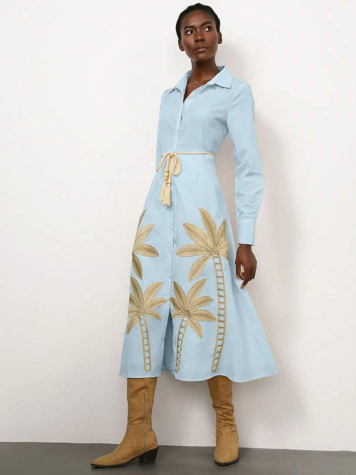 Vestido negro hecho a mano con bordados y elegantes detalles de Adorno
