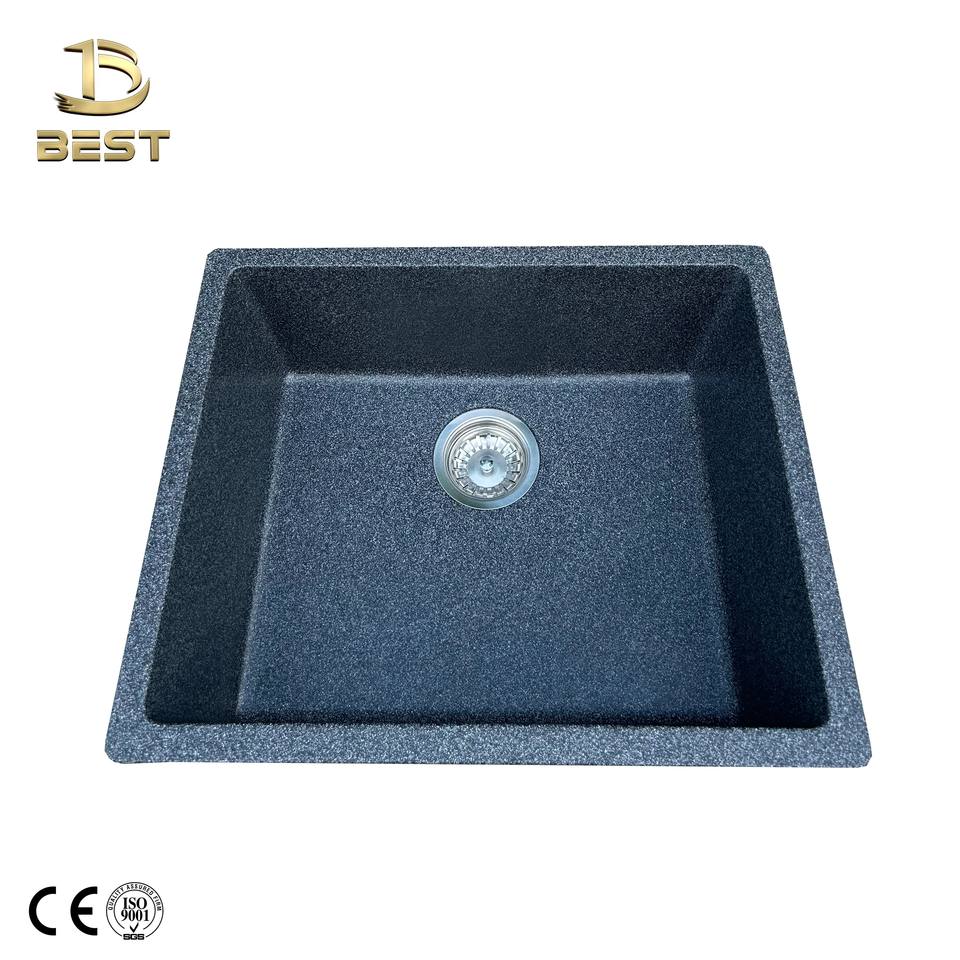 Fregadero de cocina de cuarzo negro hecho a mano de un solo cuenco sin grifo Escurridor de acero inoxidable hecho en Vietnam Material de granito compuesto