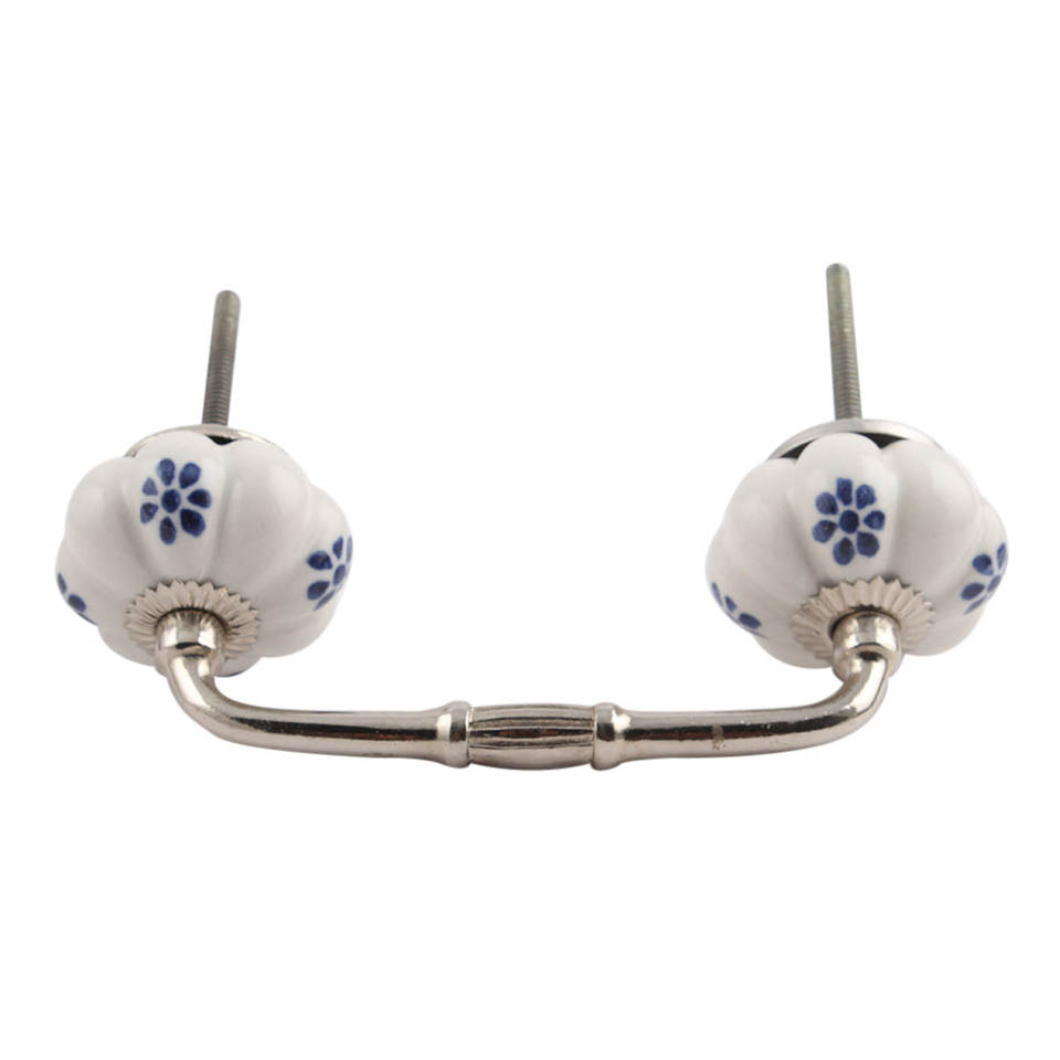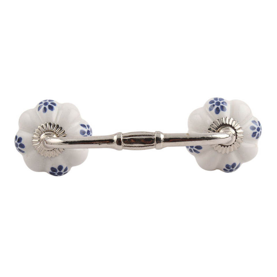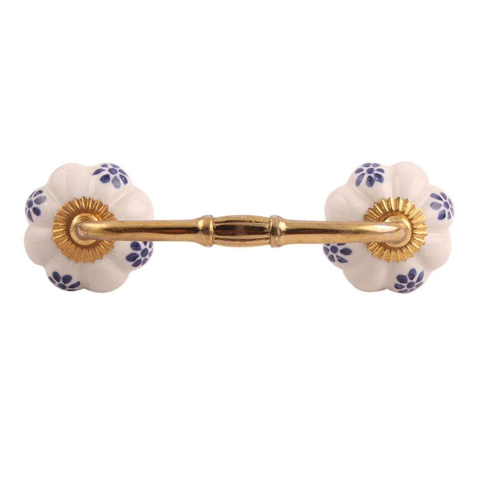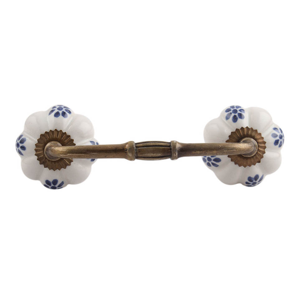 Manija de armario a granel, cerámica hecha a mano, blanco, azul, diseño Floral, venta al por mayor, tocador, lote, cajón Vintage, tirador de puerta de armario