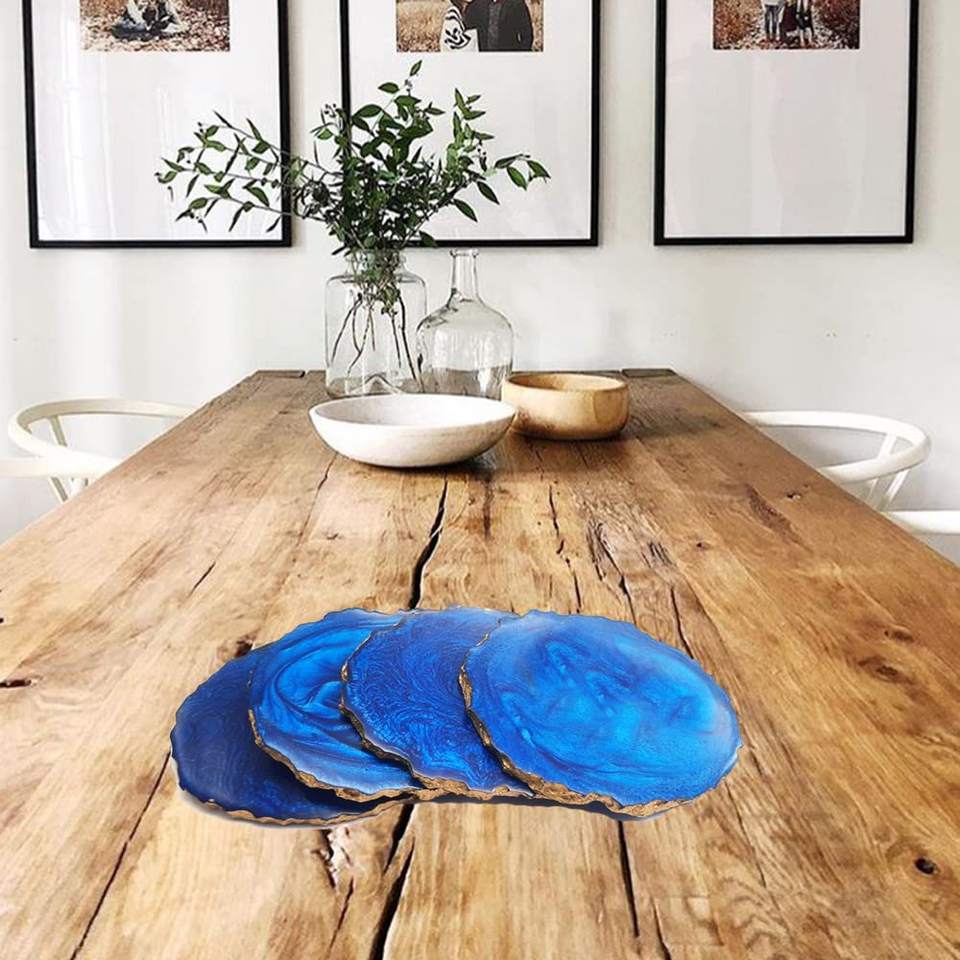 Posavasos de resina epoxi azul hecho a mano, posavasos decorativos de estilo oceánico para mesa de centro, bar y decoración del hogar