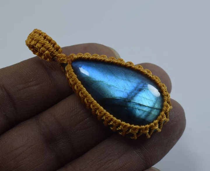 Collar con Colgante de Labradorita Azul Brillante Hecho a Mano, Cordón Dorado, Piedra Preciosa Natural, Joyería de Cristal Curativa de Estilo Boho Tribal