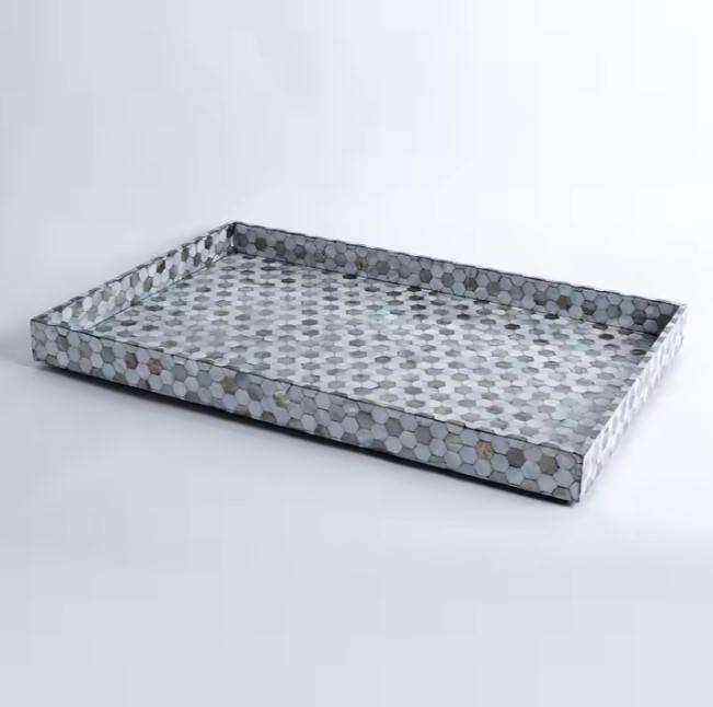 Bandeja de Almacenamiento de Una Sola Capa con Incrustaciones de Resina Azul y Blanca Hecha a Mano, Plato Decorativo para Servir, Apta para Lavavajillas, para Sala de Estar y Cocina