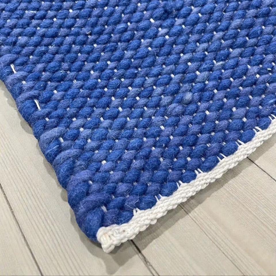 Alfombra de Lana Azul Hecha a Mano, Gruesa, de Pelo Corto, Ecológica, Antideslizante, Apta para Mascotas, con Diseño Moderno Abstracto, para Oración y Decoración del Hogar