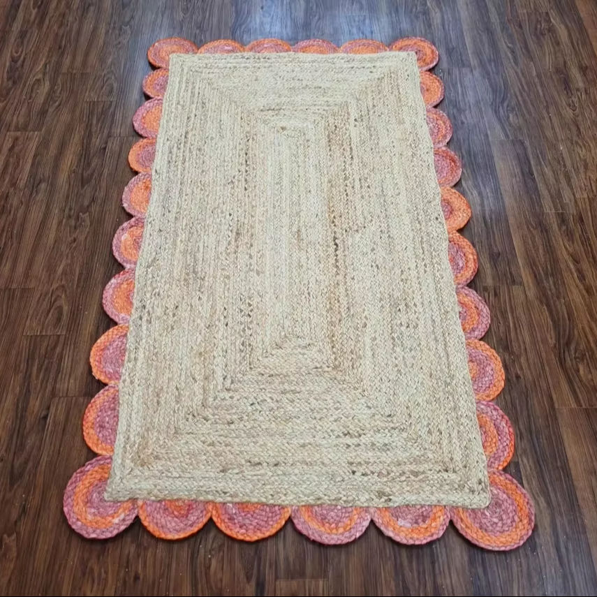 Alfombra festoneada de yute bohemio hecha a mano Patrón abstracto natural Kilim Alfombra Vieira de yute trenzada a mano
