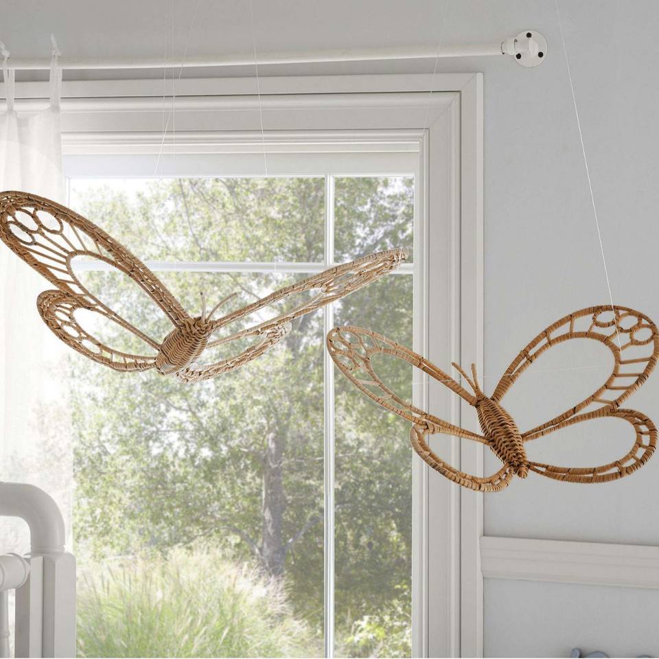 Arte de Pared de Mariposa de Mimbre Bohemio Hecho a Mano, Patrón Vertical, Decoración de Mimbre para Habitación, Decoración Colgante para Pared de Sala de Estar, Formato de Cuerda