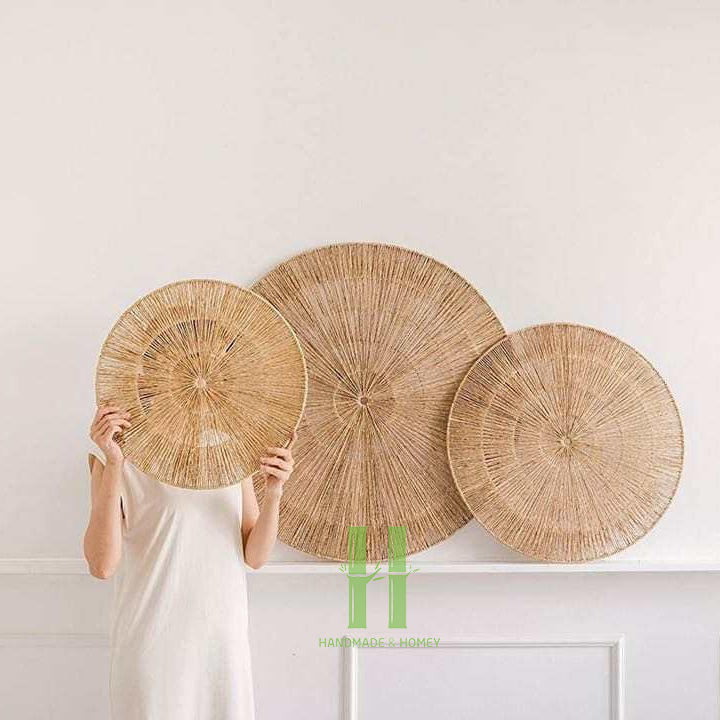 Adorno de Pared de Mimbre Natural Hecho a Mano con Forma de Cabeza de Árbol de Coco, Estilo Bohemio, para Habitación Infantil, Guardería, Decoración del Hogar, Bodas, Cumpleaños, OEM