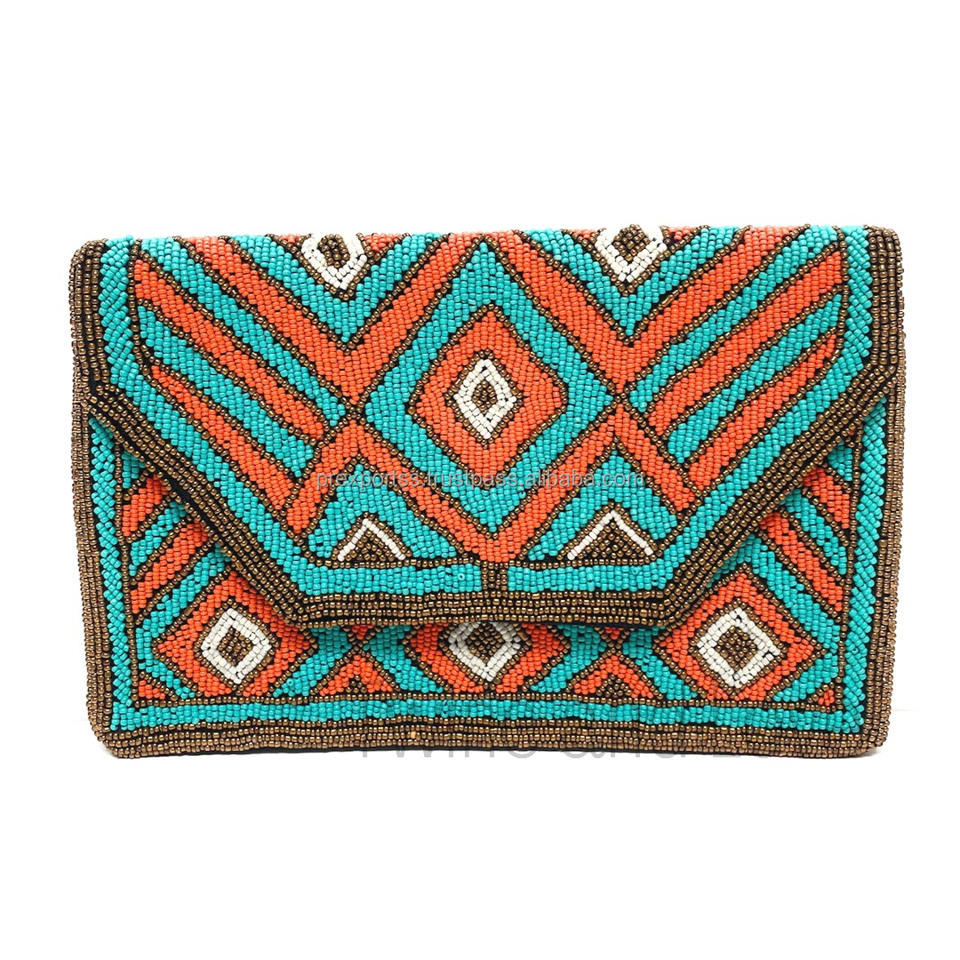 Bolso bohemio bordado hecho a mano con patrón étnico, bolso de mano con cuentas tribales, bolsa de regalo de boda duradera con monedero geométrico
