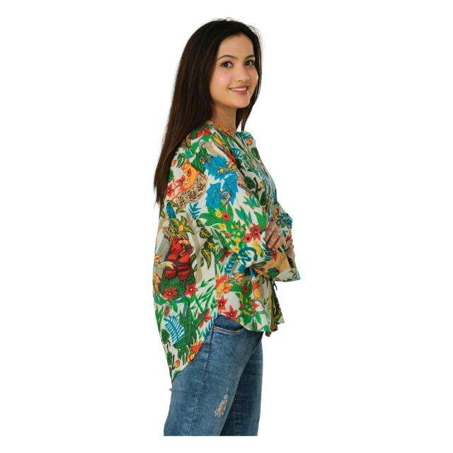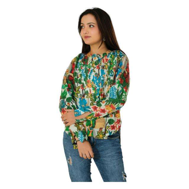 Blusa Boho Hippie Hecha a Mano con Botones y Pliegues, Ropa de Verano, Camisas Formales, Blusa de Algodón con Estampado de Bloques para Mujer, Manga Larga, Ecológica