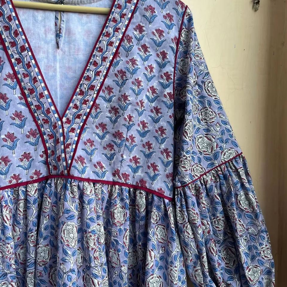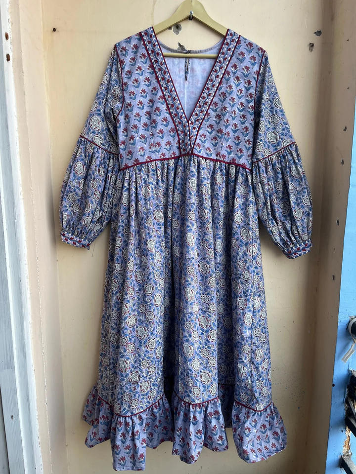 Vestido largo bohemio hecho a mano 100% algodón vestido de verano con estampado de bloque bordado mezcla de colores estilo casual hecho en La India
