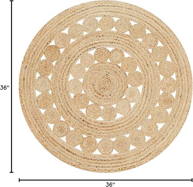 Alfombra Circular de Yute Hecha a Mano con Diseño Boho Patchwork para Decoración del Hogar, Biblioteca, Sala de Estar, Resort o Casa de Campo