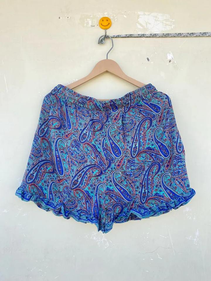 Pantalones cortos bohemios de seda hechos a mano, ropa de salón floral Sari reciclado, ropa de playa Hippie, pantalones cortos cómodos de verano para Festival para mujer, pantalones cortos de moda