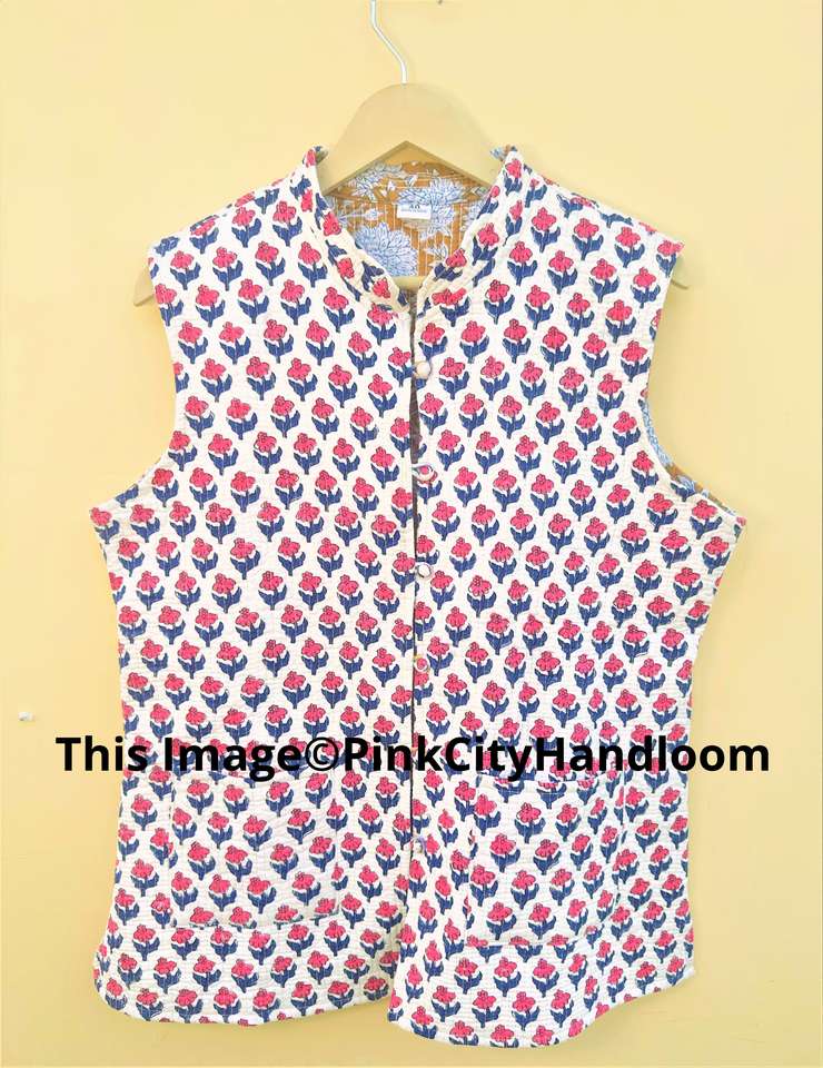 Chaqueta acolchada de algodón Floral estilo bohemio hecha a mano, abrigo de cintura estampado en bloque, botón más cerca, decoración Vintage para regalos de vacaciones