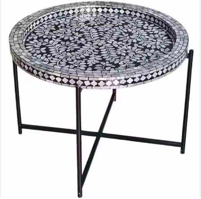 Mesa de Noche Artesanal con Incrustaciones de Hueso para Decoración Navideña del Hogar, Diseños Personalizados, Mesa de Noche de Estilo Antiguo con Incrustaciones de Hueso y Madreperla