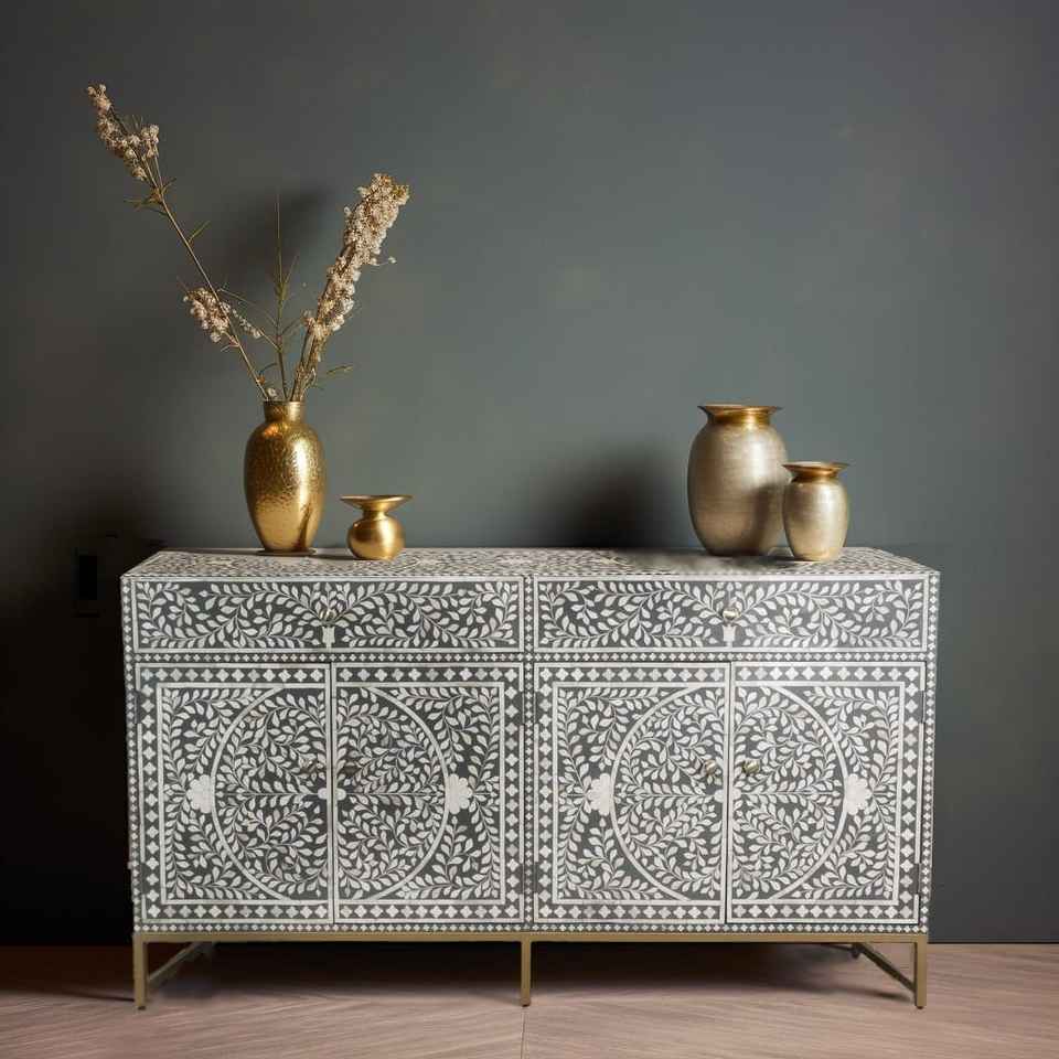 Consola con Incrustaciones de Hueso Hecha a Mano, Diseño Opulento, Mueble con Incrustaciones de Hueso para Decoración Funcional del Hogar, de la India, Venta al Por Mayor