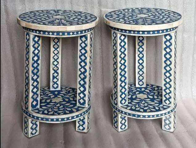 Mesa Consola Hecha a Mano con Incrustaciones de Hueso, Resina Ecológica, Mueble Moderno para Sala de Estar Estilo Indio, Altura Ajustable