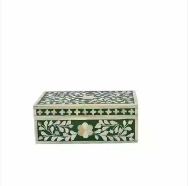 Caja de Joyería Hecha a Mano con Incrustaciones de Hueso, Tamaño Personalizado, Madera Sólida Pulida Ecológica, Fabricante de la India
