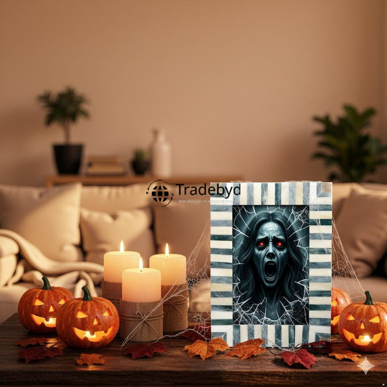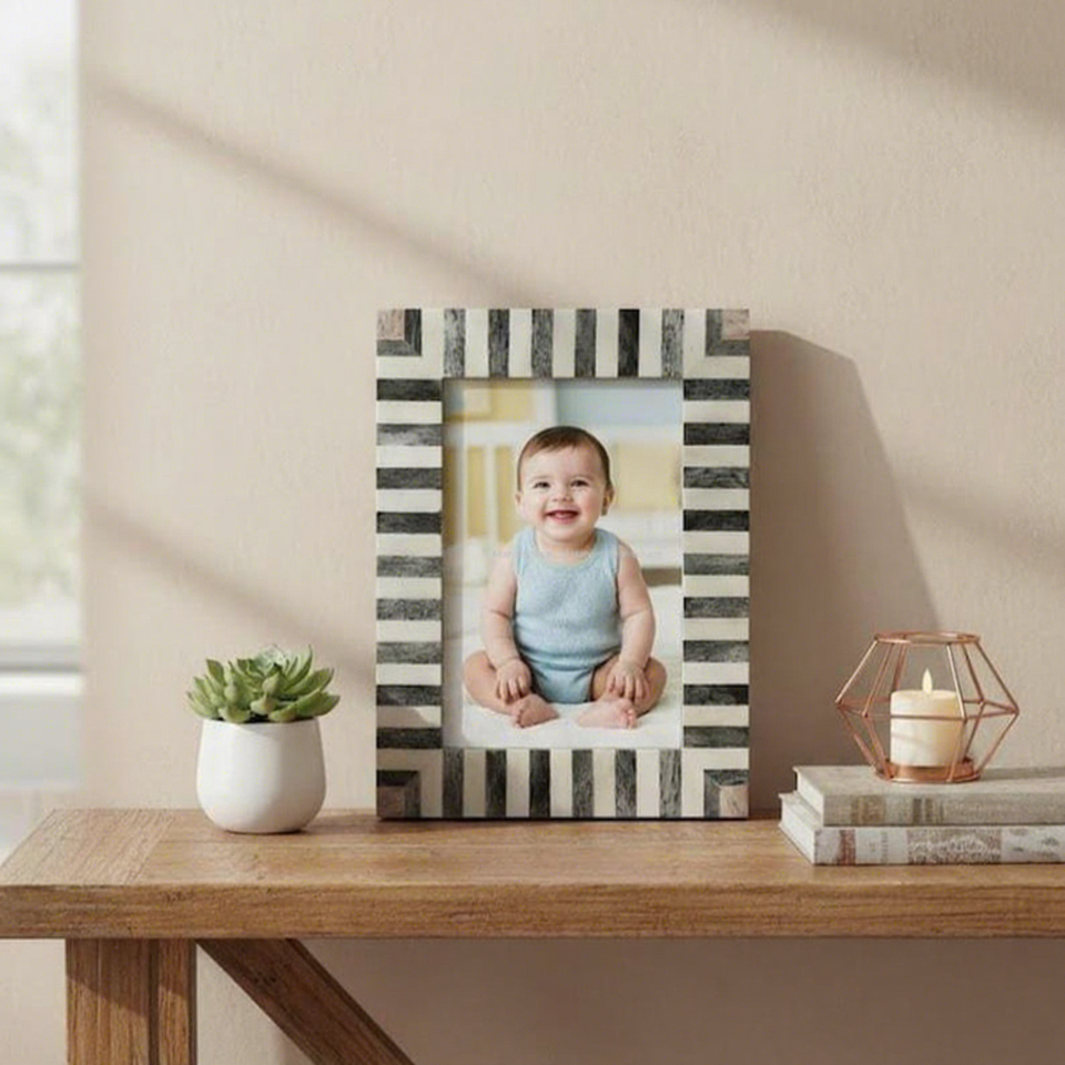 Marco de Fotos Creativo con Incrustaciones de Hueso Hecho a Mano con Acabado Brillante, Regalo Premium de Tradebyd