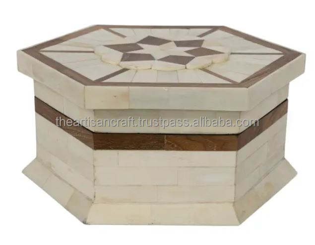 Caja de Almacenamiento de Joyas Rectangular con Incrustaciones de Hueso Hecha a Mano por Artesanos - Estilo Moderno, Duradera, Tamaño y Color Personalizables