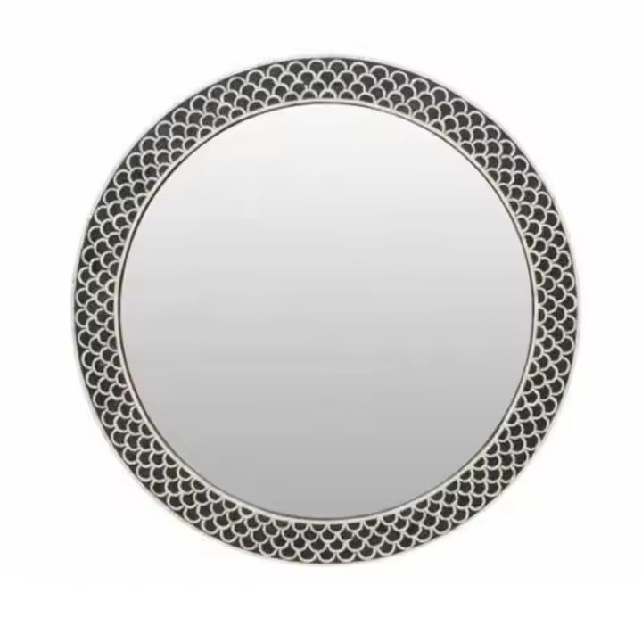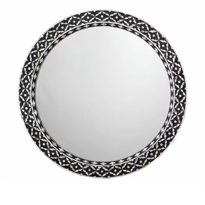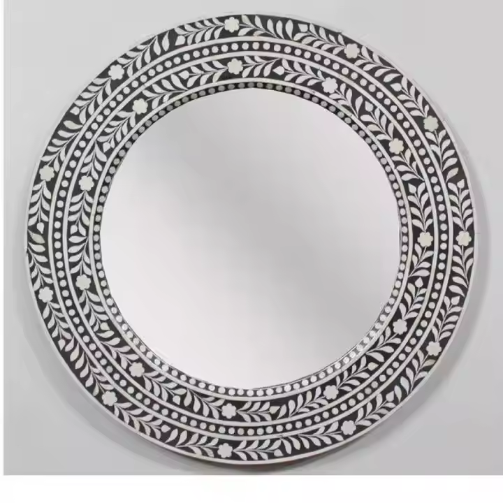 Marco de espejo redondo con incrustaciones de hueso hecho a mano, decoración del hogar, muebles de regalo artístico para sala de estar, pared única decorativa por artesanía de media luna