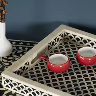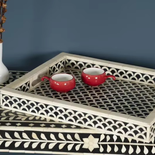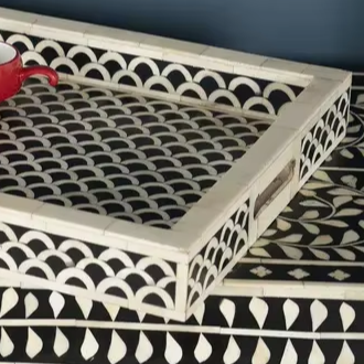 Bandeja Artesanal con Incrustaciones de Hueso: Patrón de Escamas de Pescado en Blanco y Negro POR PERFECT ENTERPRISES