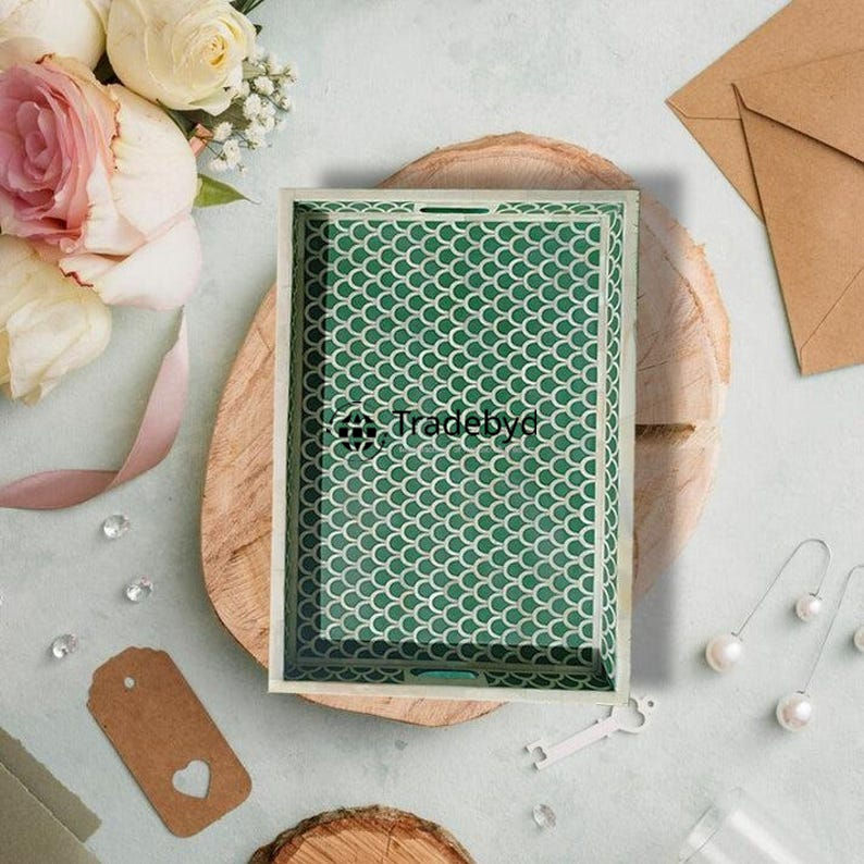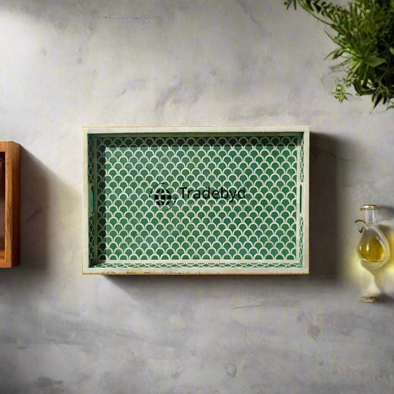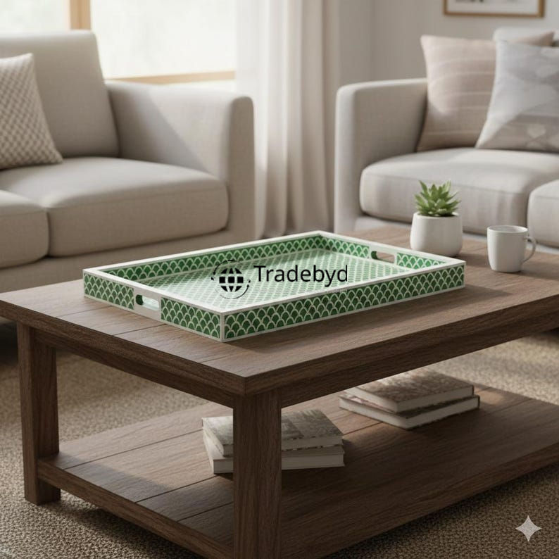 Bandeja Decorativa de Lujo con Incrustaciones de Hueso Hecha a Mano para Servir en la Mesa de Comedor o Decoración de Mesa de Café por Tradebyd
