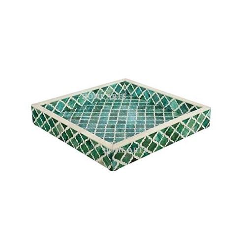 Bandeja de comida de trabajo con incrustaciones de hueso hechas a mano, bandeja de servicio de té y café de forma cuadrada de último diseño para superventas
