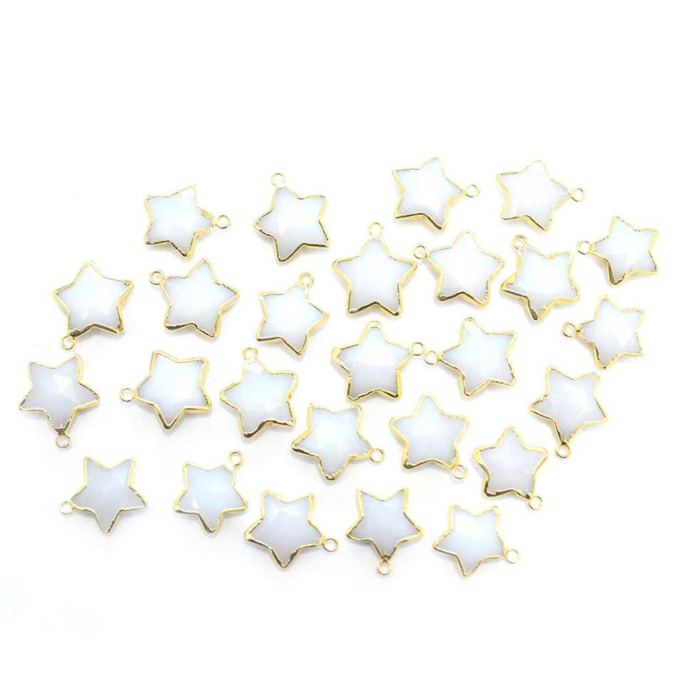 Nombre del Producto::Ágata Blanca de 14 a 16 mm con Colgante en Forma de Estrella y Baño de Oro.