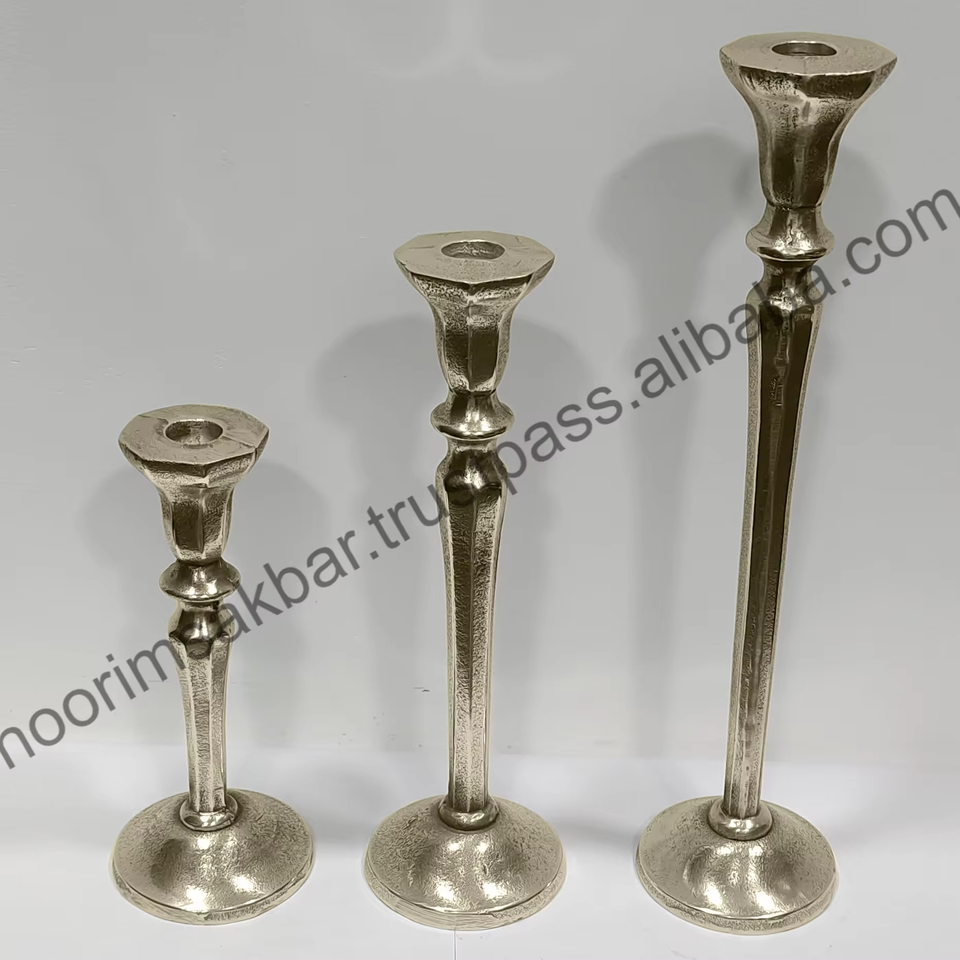 Soporte de vela de metal chapado en latón hecho a mano, soporte de aluminio pulido personalizado para Navidad, boda, cena, mesa decorativa
