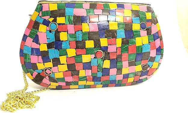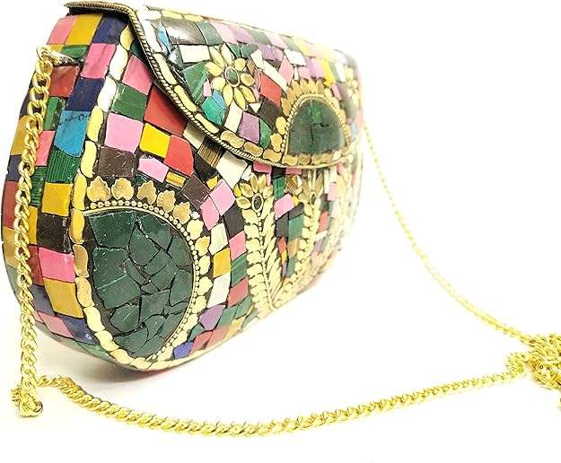 Bolso de Viaje Metálico de Moda para Novia, Hecho a Mano, Acabado de Primera Calidad, Material de Mosaico, Bordado para Fiestas y Bodas