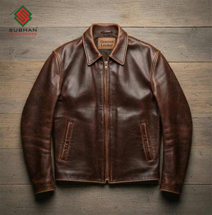 Chaqueta de Cuero Sintético Marrón Hecha a Mano para Hombre | Chaqueta Bomber Casual Estilo Motero Vintage | Ropa de Motociclista Clásica Retro con Forro de Lana
