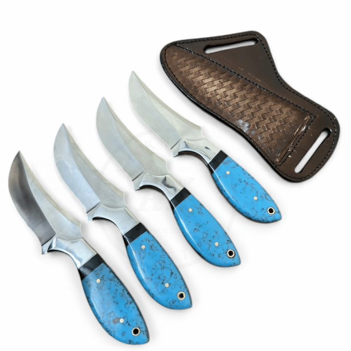 Cuchillo de caza vaquero de acero de Damasco hecho a mano, hoja fija, mango de resina acrílica, funda de cuero para exteriores, OEM