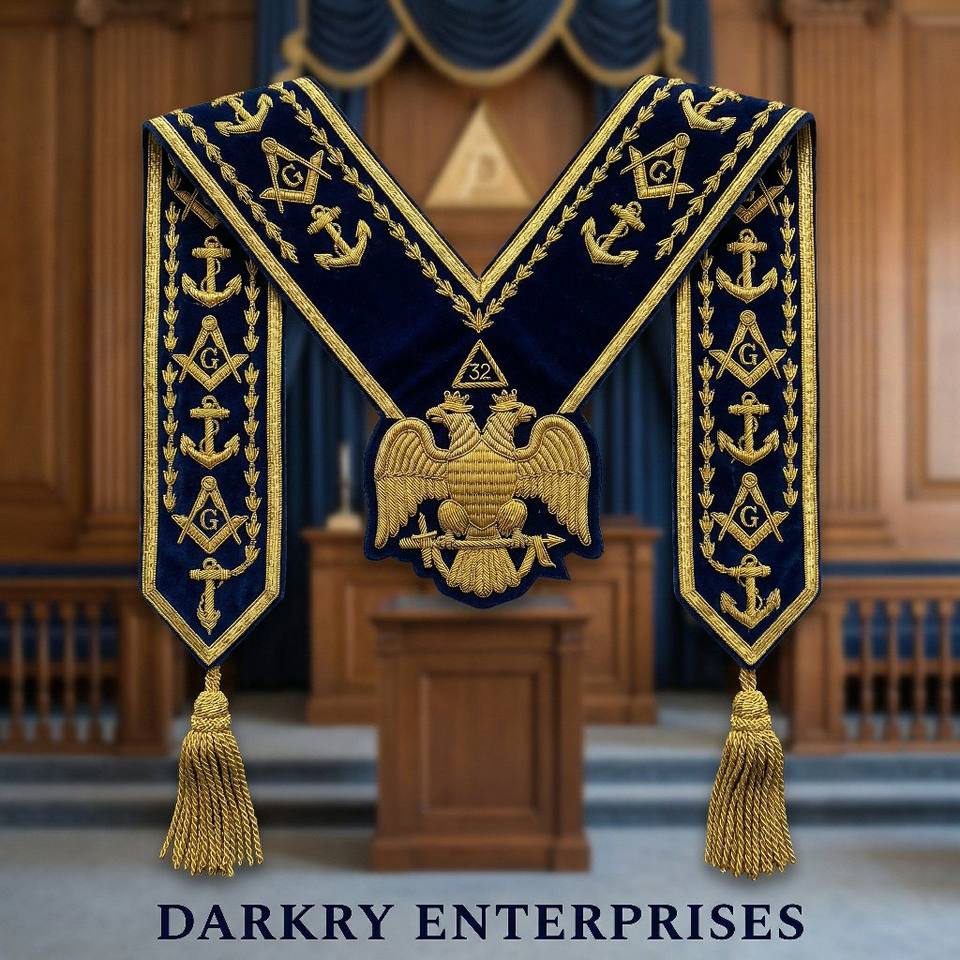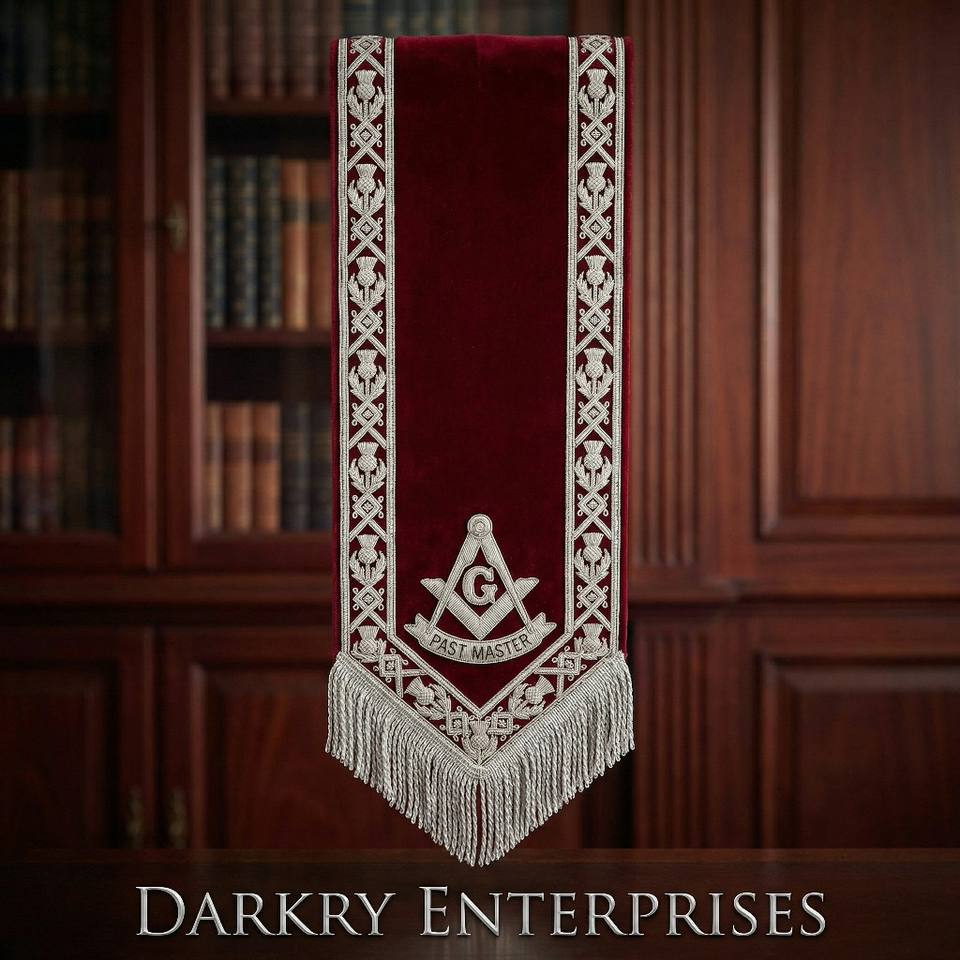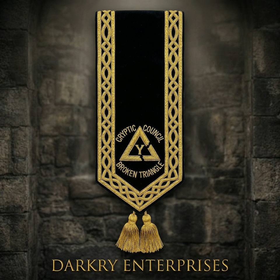 Banda Masónica del Consejo Criptico Bordada a Mano con Hilo de Oro, Triángulo Roto, Terciopelo Negro, Regalia, Servicio Personalizado
