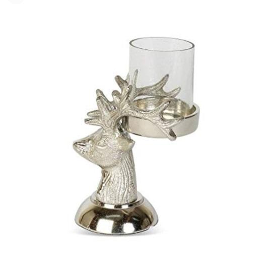 Tarro de vela hecho a mano, diseñador único, alta calidad, moderno, personalizado, cabeza de Reno de cristal, ciervo y portavelas de cristal