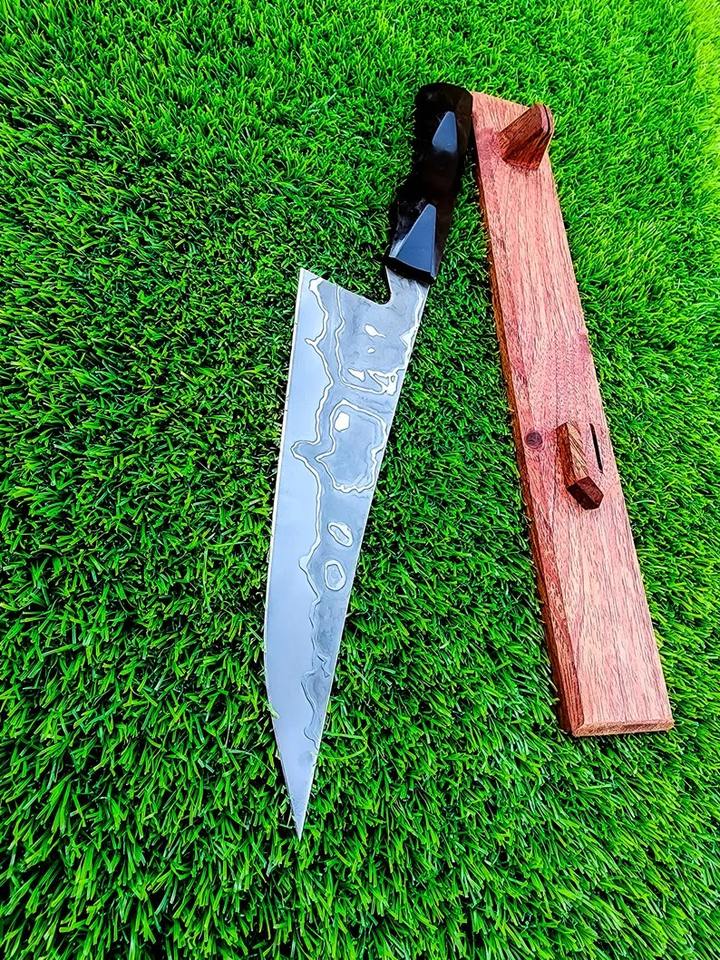 Cuchillo de chef de acero al carbono hecho a mano bellamente diseñado y fácil de agarrar cuchillos de lanza de supervivencia de grado de cuero