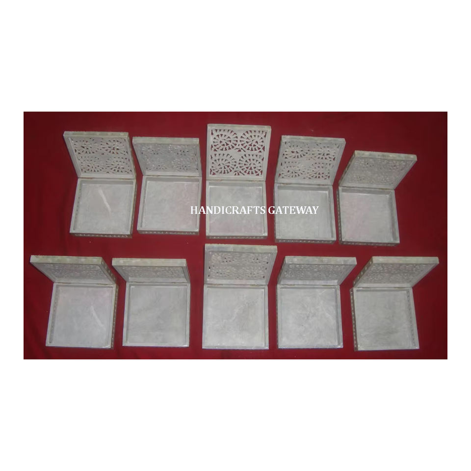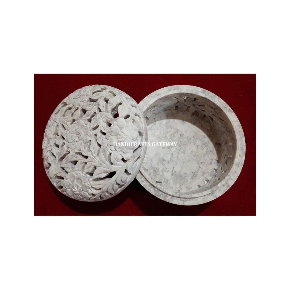 Hermosa forma rectangular hecha a mano de caja de talla de joyería de esteatita con piedra tallada personalizada diseñada para tamaño estándar