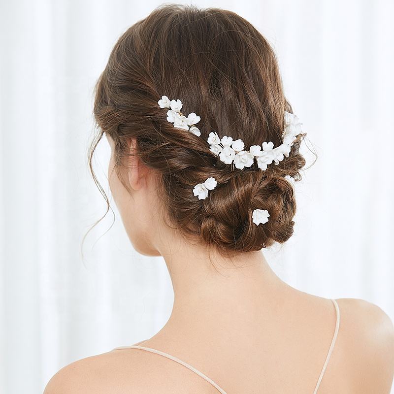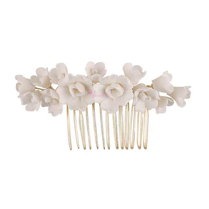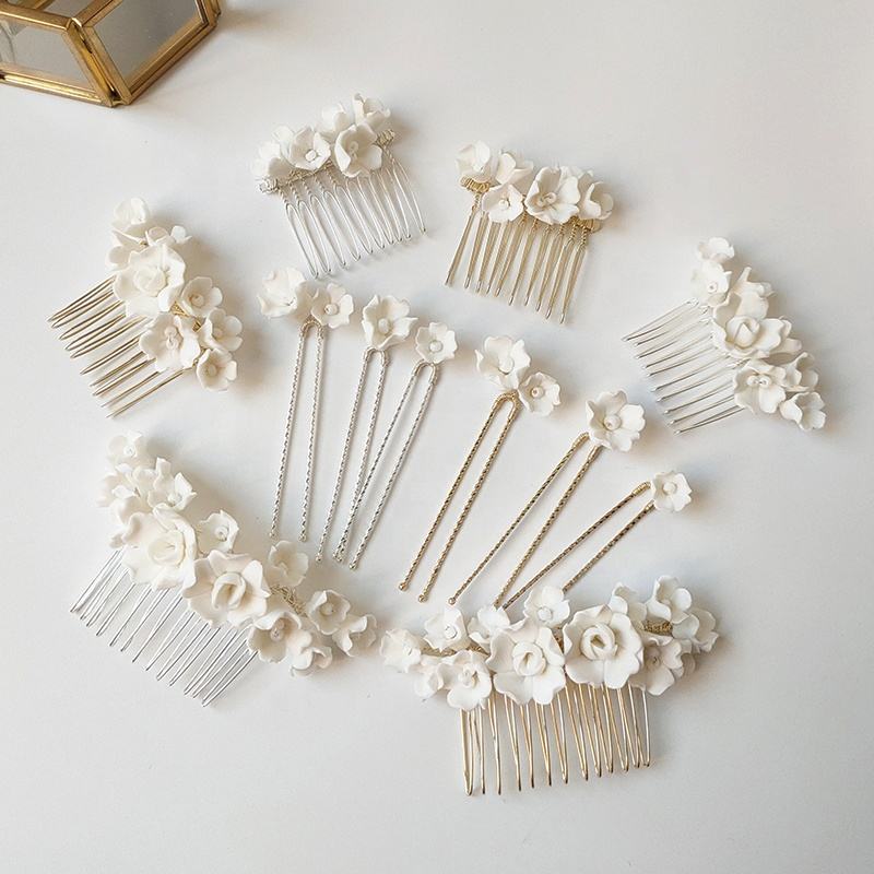 Conjunto de Peine de cerámica hecho a mano para el pelo de flores, accesorios de joyería para el cabello de fiesta de salón de Boda nupcial para novias e invitados