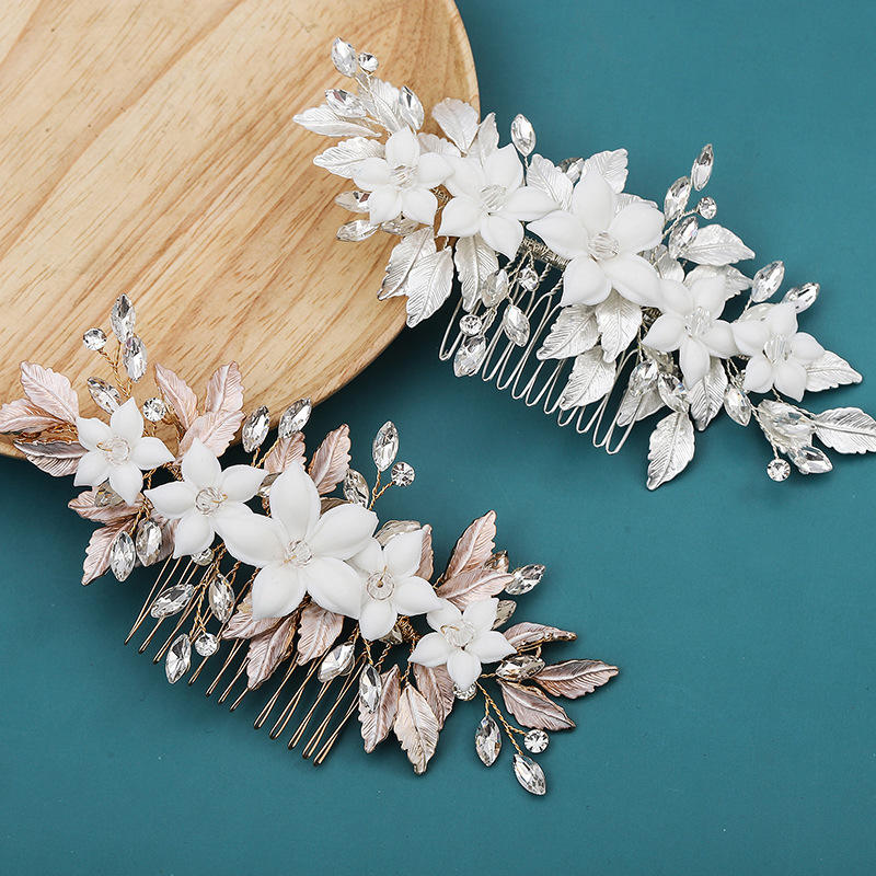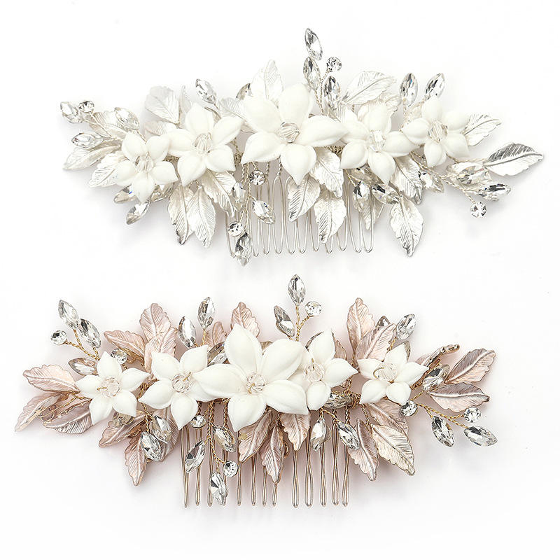 Peine de pelo de flor de cerámica hecho a mano para tocado de novia tocado nupcial de diamantes de imitación