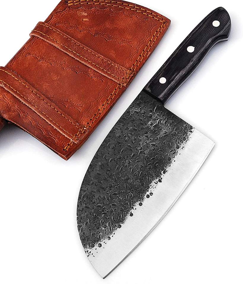 Cuchillo de Chef hecho a mano, diseño serbio Tang completo, hoja de acero de Damasco, cuchilla forjada para uso en la cocina, corte de carnicero
