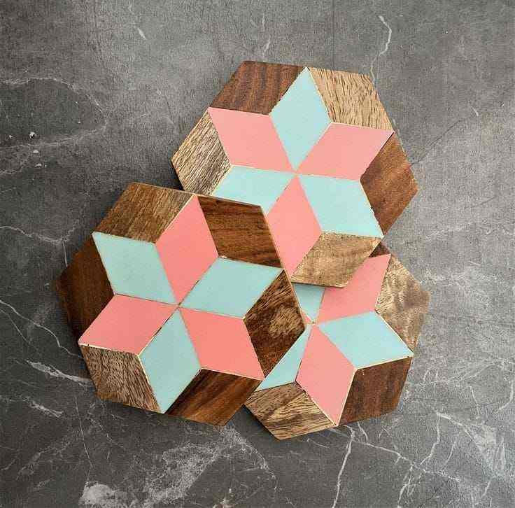 Posavasos de Resina con Patrón Chevron Hechos a Mano para Oficina, Posavasos Sencillos con Incrustaciones de Hueso para el Hogar, Posavasos de Madera de Mango y MDF para Hotel