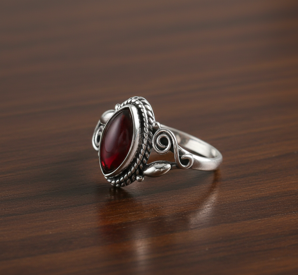 Palabra clave:Anillos de plata oxidada con granate