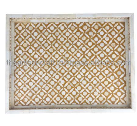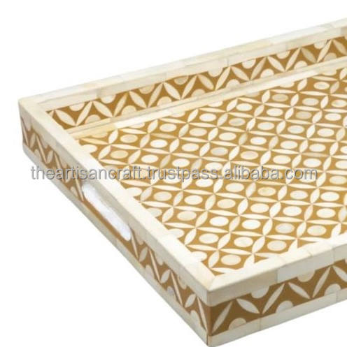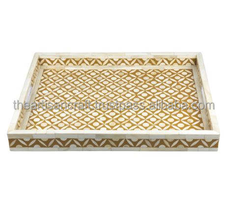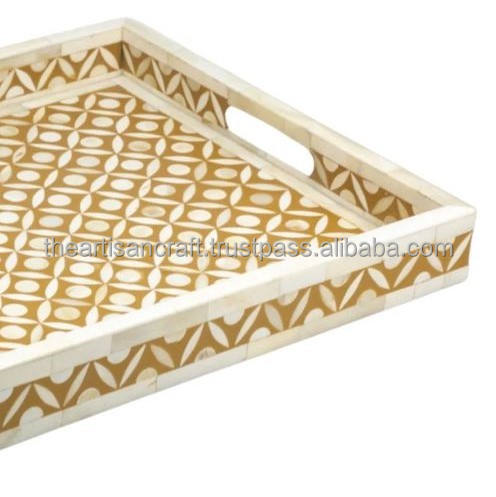 Bandeja de Servir Clásica Hecha a Mano con Incrustaciones de Hueso, Vajilla, Almacenamiento, Decoración para el Hogar, Regalo