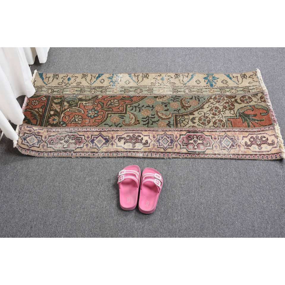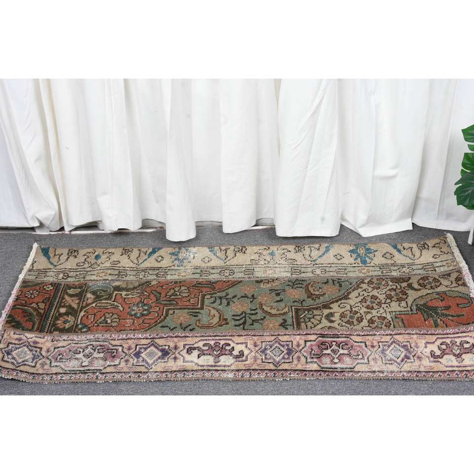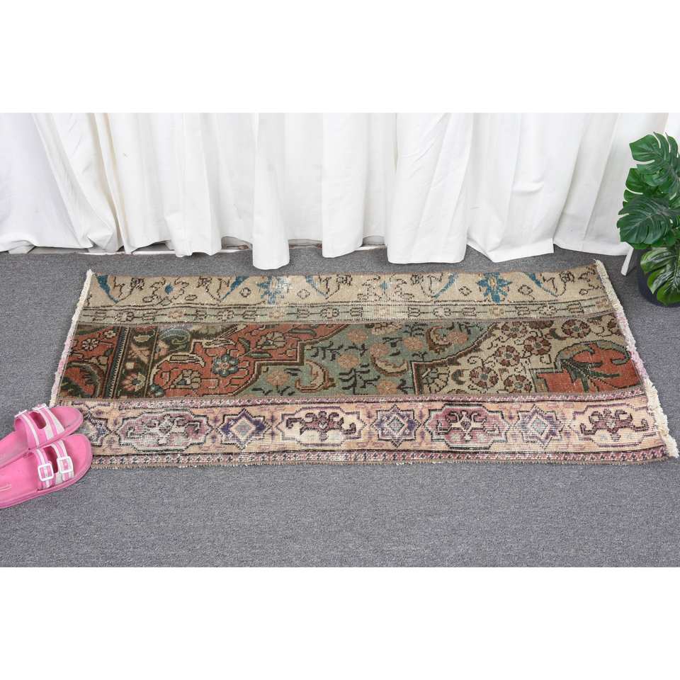 Alfombra clásica de lana marrón y beige hecha a mano, diseño de retazos rectangulares turcos de 1,8x3,9 pies para sala de estar, alfombras de noche con respaldo de látex