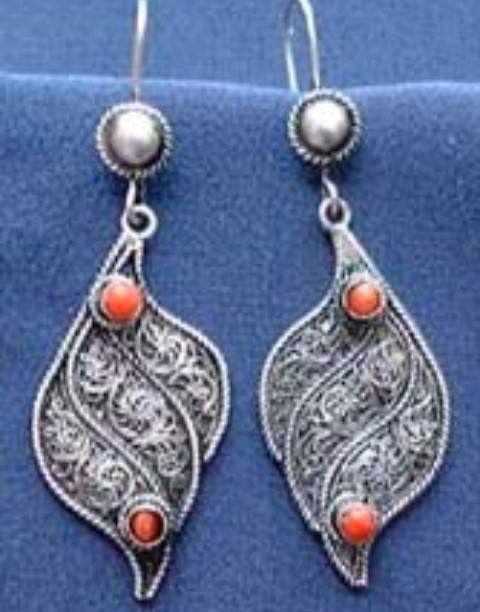 Pendientes de gota étnicos clásicos hechos a mano:Metal principal es plata de ley 925