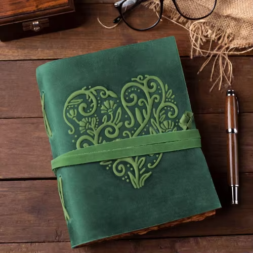 Diario de Cuero Genuino Hecho a Mano con Grabado de Corazón Clásico para Mujer, con Motivo de Corazón para Escribir, Dibujar y Hacer Bocetos