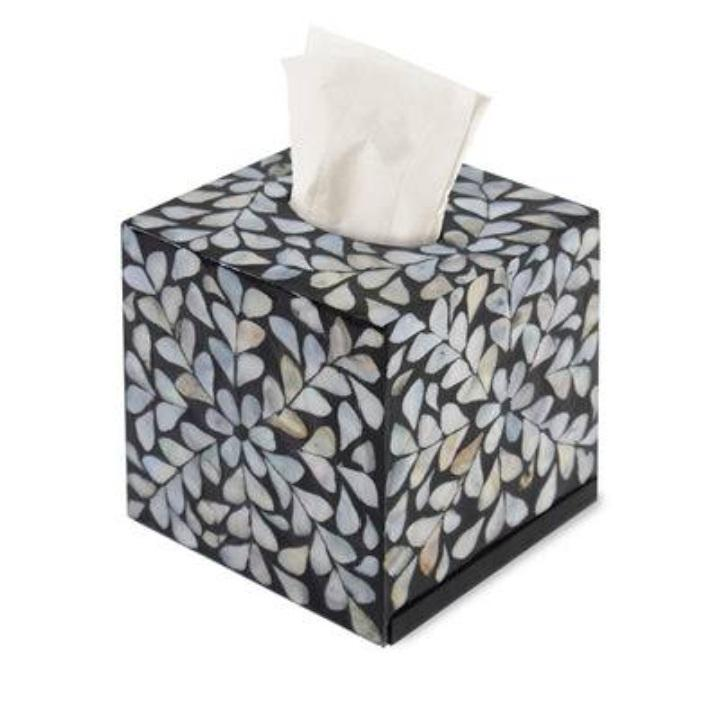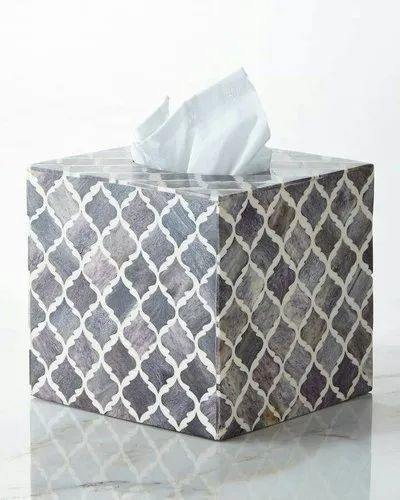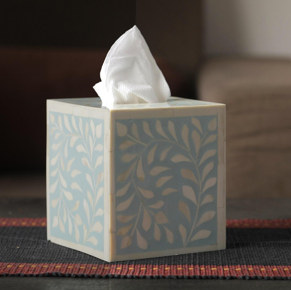 Caja de pañuelos clásica hecha a mano con incrustaciones de hueso de color natural para almacenamiento y contenedor de papel
