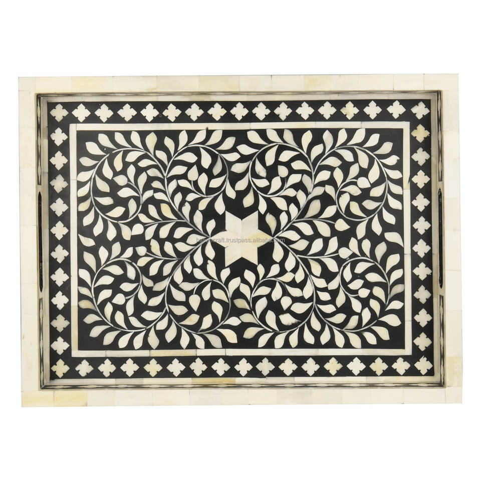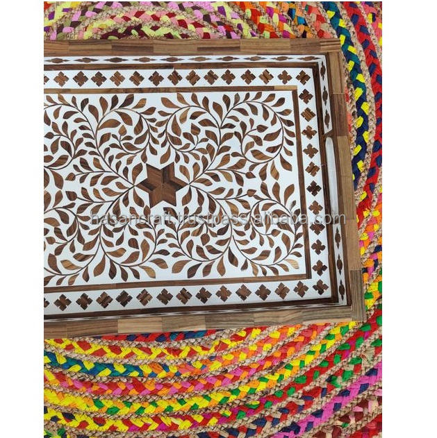 Bandeja con incrustaciones de hueso de madera clásica hecha a mano, bandeja de servicio de MDF de tamaño personalizado rectangular para el hogar, Hotel, restaurante, supermercado, venta al por mayor
