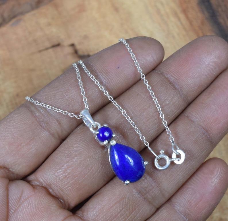 Colgante clásico hecho a mano 925, joyería de plata maciza para mujer, colgante de estilo bohemio de piedras preciosas de lapislázuli de Plata de Ley 925, regalo para hermana