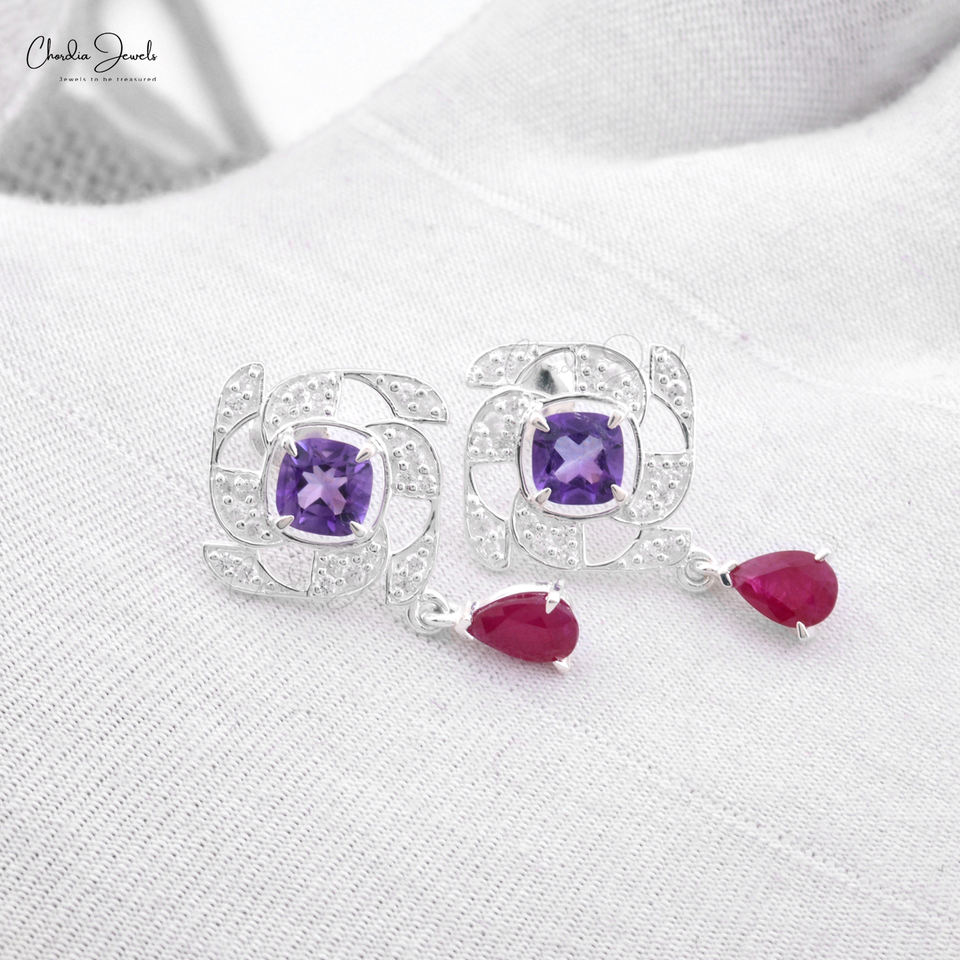 Pendientes Colgantes Bohemios de Flor Chapados en Oro con Amatista de 5MM Hechos a Mano, con Circonita Cúbica, Joyería Colgante de Fabricante de la India