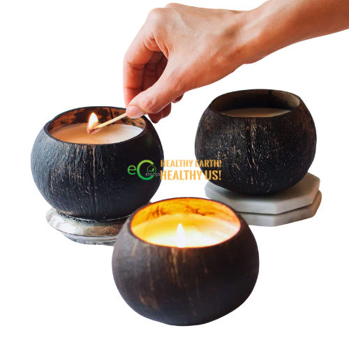 Vela de Cera de Soja en Cáscara de Coco Hecha a Mano para Decoración del Hogar, Exportación al por Mayor desde Vietnam para las Festividades Navideñas