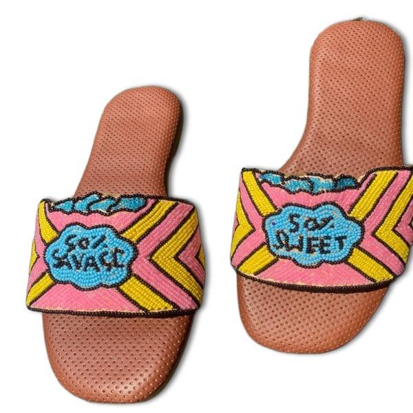 Sandalias planas hechas a mano con cuentas coloridas para mujer, calzado moderno y cómodo para playa, piscina, fiestas, verano y vacaciones.